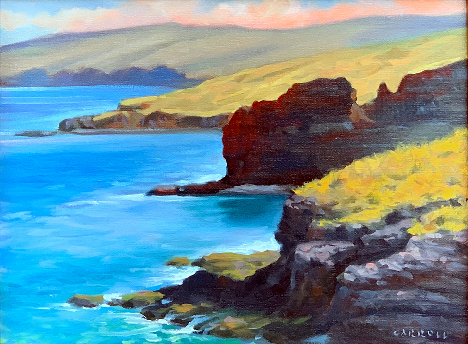 The delivery guys picking up supplies at Kaumalapau Harbor were able to see this painting in progress! I love the deep shadows of the cliffs against the brilliant color of the ocean.