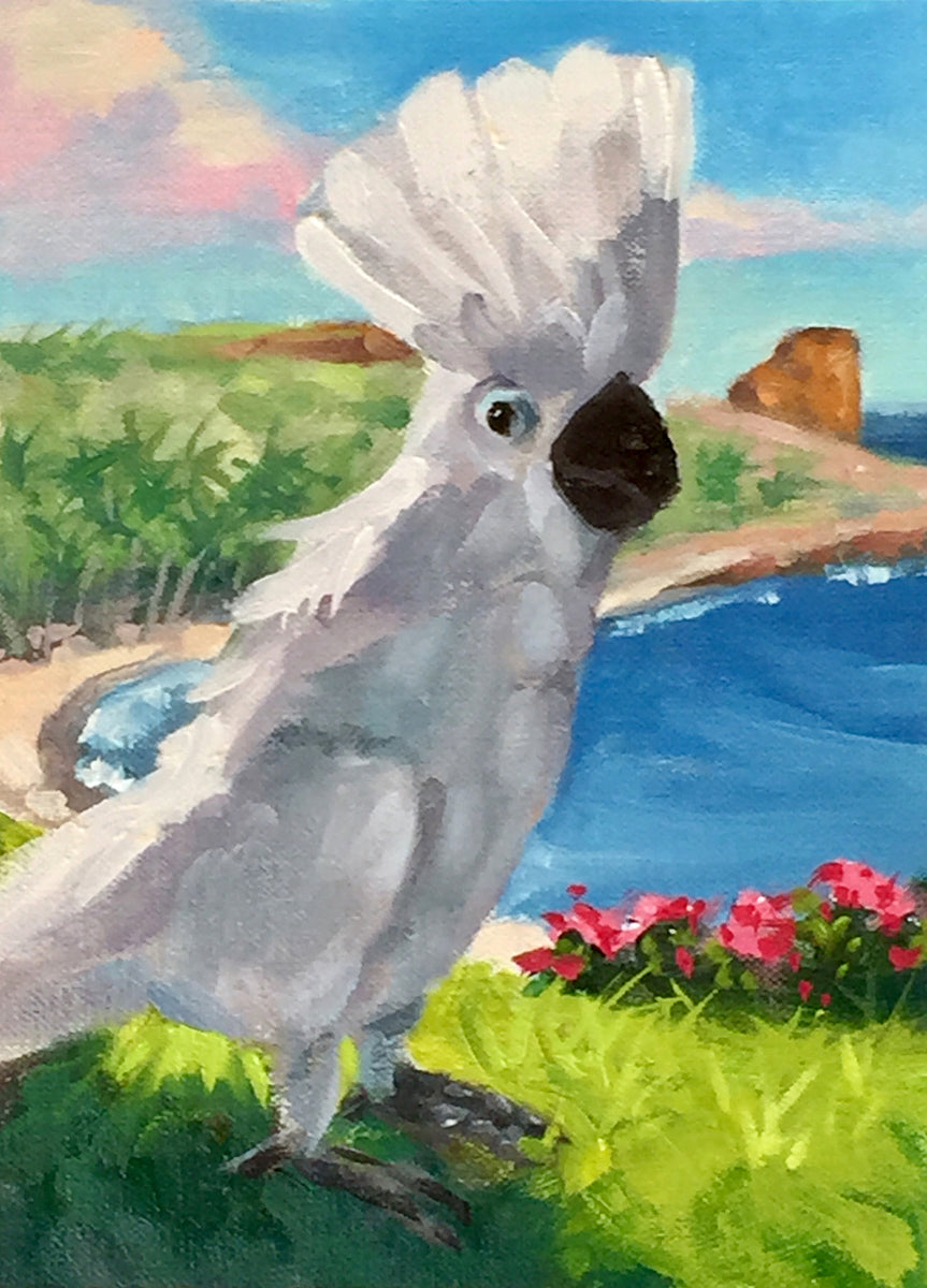 Keokeo, a white cockatoo, is one of the rescue birds at the Four Seasons Resort Lana'i...and what a rascal he is!  So many visitors to our gallery say Keokeo was a big part of their stay on Lana'i.