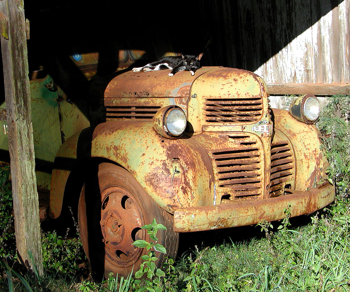 I saw this "tuxedo cat" lounging in the sun on the hood of a rusty Dodge in Lana'i City one morning... for me, this captured the essence of a Lazy Lana'i Day!