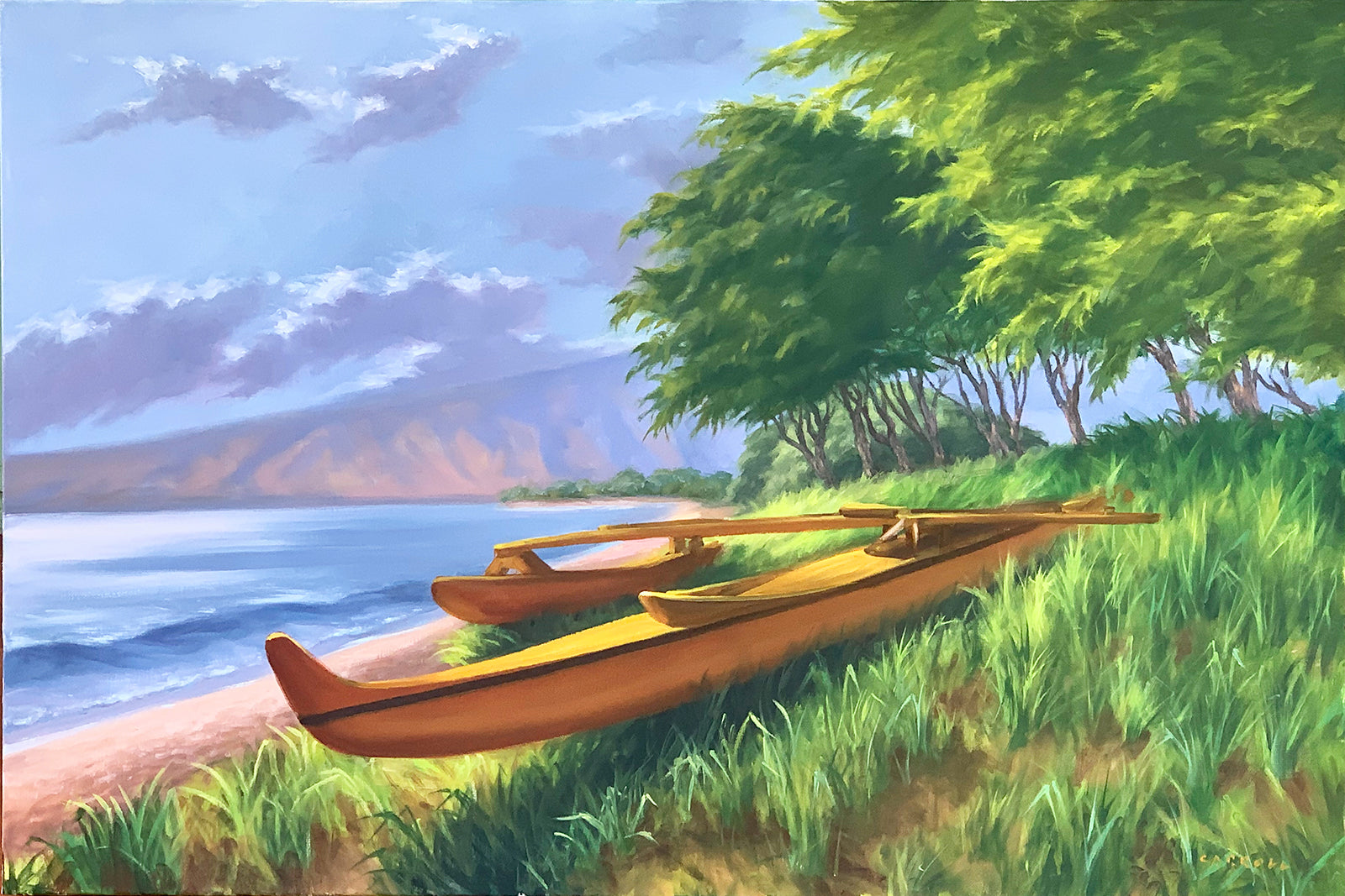 I spotted this vintage outrigger canoe, named "Hina", tucked away in the tall grass on Maui's Sugar Beach.   I love the choice of name, as in Hawaiian mythology, Hina is the goddess of the ocean and moon.