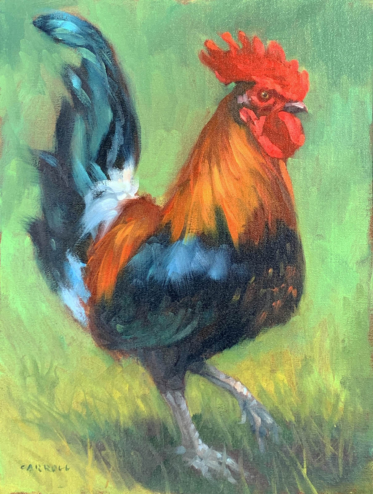 Every time I go to Maui there seem to be more and more chickens!  This fellow serenaded me while I was painting him...bits of chocolate chip cookies kept him close!