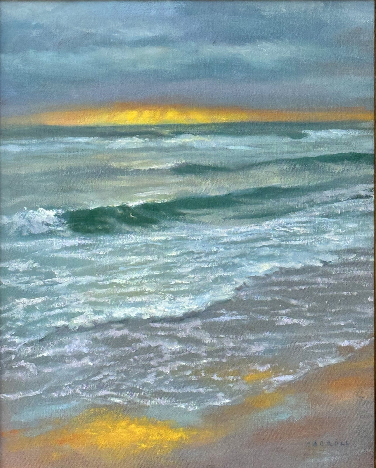 This painting was based on a photo Kat took at Lanai's Hulopo'e Bay...sometimes it just takes a sliver of sun to make a beautiful sunset!  "Golden Hour" found a home in Michigan thirty minutes after I signed it--I'm glad the guests were drawn to the scene as much as I was!