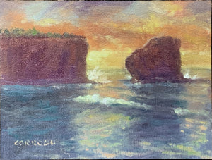 Our iconic sea stack, Pu'upehe, is glorious at any time of day! I thought it would be fun to channel my "inner Monet" and paint it at different times of day. This is the view just as the sun has crested Haleakala in the distance.